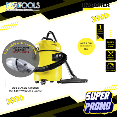 KARCHER HOME & GARDEN | WD1 CLASSIC KARCHER WET & DRY VACUUM CLEANER | 180AW SUCTION POWER