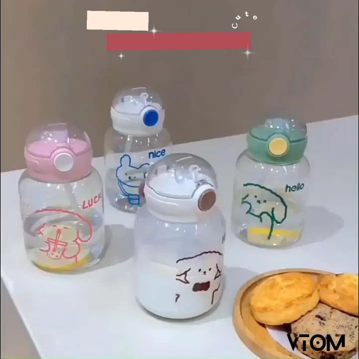 VTOM 600ml Small And Cute Plastic Water Bottle With Straw For Kids (8cm x 15cm) Drinking Botol Air Plastik Budak Murah