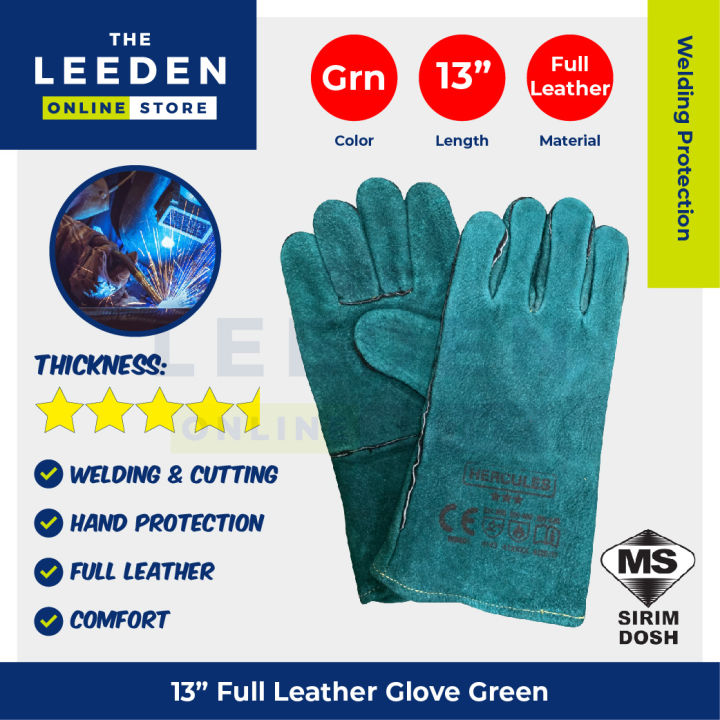 Hercules Full Leather Gloves (Green) 13" by Leeden Online Store